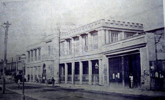 La fachada destacaba por su simetría, resuelta con dos arquitrabes sostenidos por seis columnas dóricas, en cuyo centro abría sus hojas una puerta ojival. En este edificio se mezclaron elementos clásicos y góticos, siguiendo modelos muy utilizados en Norteamérica.