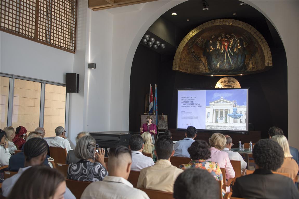 La clausura de la cita, este jueves, resultó ser de gran provecho. El ciclo de conferencias inició con la intervención de la Doctora en Ciencias Lis Cuesta Peraza, Coordinadora de eventos y turismo del Ministerio de Cultura de Cuba e investigadora adjunta del Instituto Central de Ciencias Pedagógicas, ICCP, con la ponencia “El impacto de los intercambios académicos y culturales en la diplomacia cultural”.