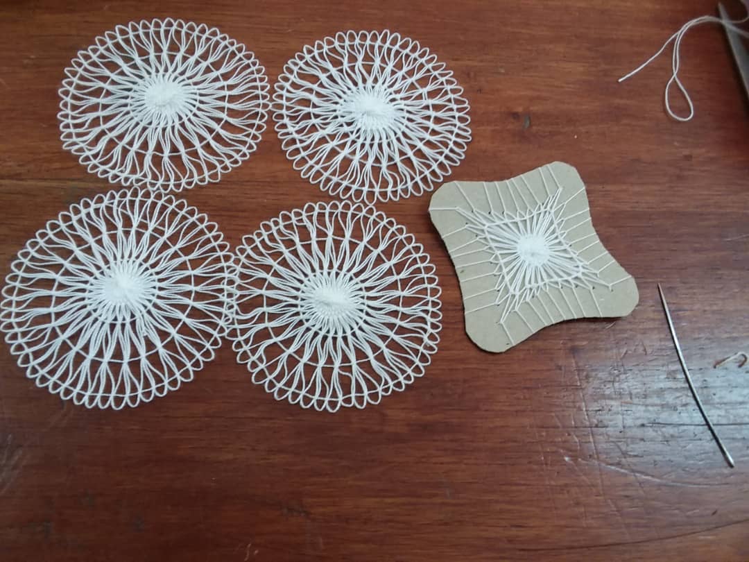 Como tela de araña se titula su exposición, pequeña pero representativa de su quehacer en esa manifestación del encaje con aguja, llamada Sol de Naranjito en Puerto Rico, ñandutí en Paraguay y que en Cuba se ha cultivado sobre todo en la región central, introducida por canarios procedentes de Tenerife, España.