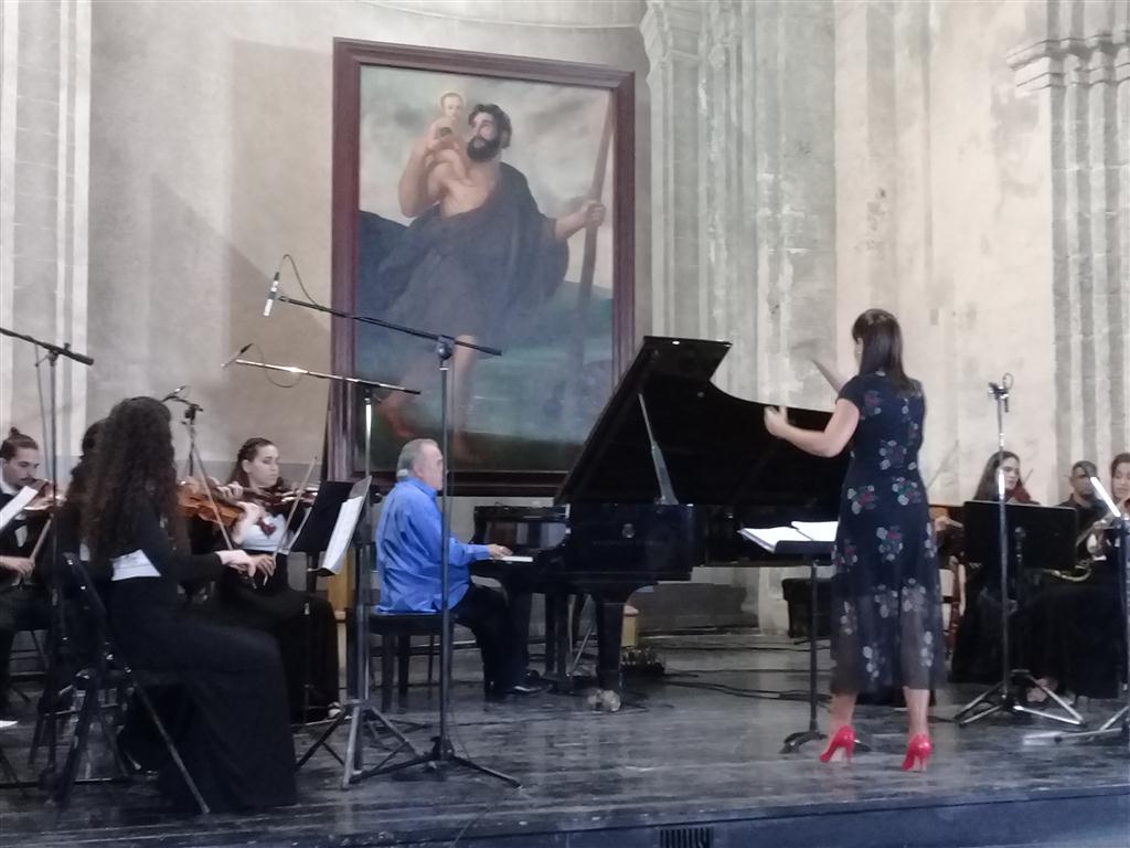 Acompañado por la joven directora de la Orquesta de Cámara de La Habana Daiana García y la primera violinista, el compositor rindió tributo a quien fue su amigo, el Historiador de La Habana, Eusebio Leal Spengler, con la presentación de una de las piezas de la banda sonora de la telenovela cubana Tierra Brava titulada “Tema de amor”.