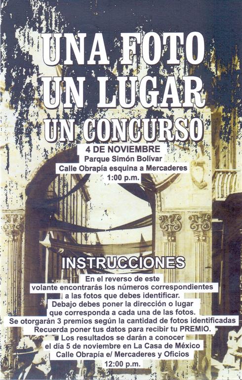 “Para este concurso vamos a utilizar algunas de las imágenes antiguas que tenemos de la Ciudad de La Habana, las cuales muestran su evolución histórica y urbana. Queremos mostrarlas para que las personas sean capaces de identificar muchos de estos lugres que han cambiado con el paso del tiempo, y que muestran mucho la belleza de la ciudad. Vamos a colocar algunos de estos ejemplares el lunes 4 de noviembre a las 2:00 pm en una exposición en el parque situado frente a la Casa de México. Vamos a colocar alrededor de 15 o 16 imágenes, las personas pueden caminar por la ciudad identificándolas. Serán premiadas las primeras tres personas que hayan podido identificar la mayor cantidad de fotografías, quienes resultarán ganadores”, explicó Eliane García Marrera, especialista de la Fototeca Histórica.