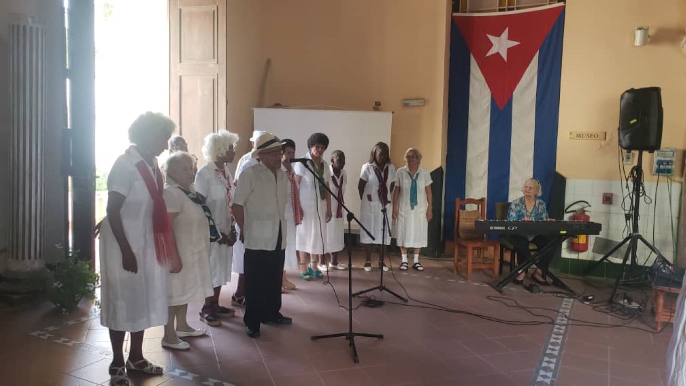No pasó por alto la coincidencia de este aniversario con el natalicio de Nicolás Guillén, y el adulto mayor Lino Cortina declamó “La canción del Bongó”. A este homenaje al Poeta Nacional, le siguió el coro de día del Convento de Belén, que interpretó la canción “Nosotros”, bajo la conducción de la profesora Adalis Santiesteban.