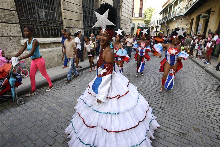 La agrupación infanto-juvenil del proyecto sociocultural Asociación Quisicuaba, las comparsas El Alacrán y los Componedores de Batea, el Piquete Santiaguero, figurantes costumbristas de La Habana Vieja y estudiantes africanos en Cuba, transitaron por todas las Plazas del Centro Histórico – la de Armas, la de la Catedral, para cerrar en la Vieja – junto al pueblo que se sumaba a este jolgorio, el cual revive hace 20 años gracias a la Casa de África de la Oficina del Historiador de la Ciudad.
